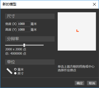 - 单击中心或白框的一角,指定模型的原点。 原点位置