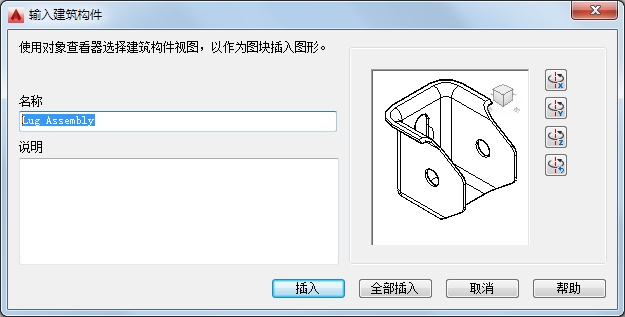 - 使用“旋转”按钮,在将模型插入到图形中时,围绕 X、Y 或 Z 轴旋转模型。