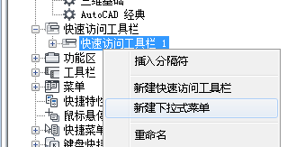 新的快速访问工具栏(称为“快速访问工具栏1”)将置于“快速访问工具栏”节点的底部。