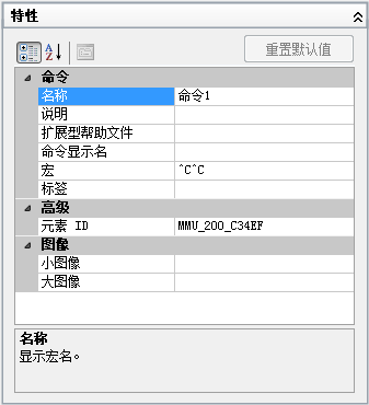 - 在“名称”框中为命令输入一个名称。该值在添加到用户界面元素时将用作默认名称,并将用作工具提示的一部分。