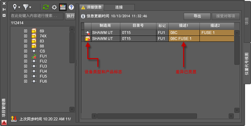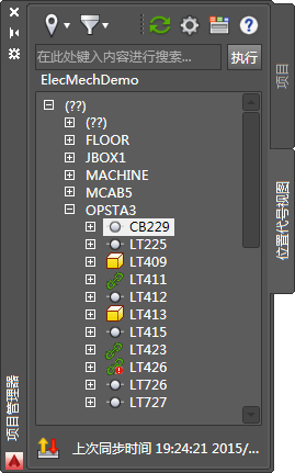 “项目管理器”中的新“位置视图”选项卡提供了激活项目中包含的装置和布线的完整视图。元件按安装代号和位置代号值进行组织。