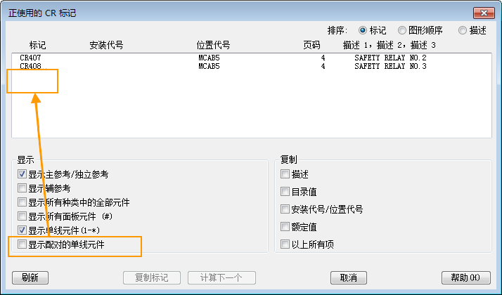 选中该复选框可过滤出所有原理图、面板和单线参考,而不管原理图元件或面板元件是否存在匹配的单线元件。结果列表只包含不具有匹配的单线元件的标记。