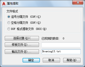 生成一个文件,其中包含的记录与图形中的块参照一一对应,图形至少包含一个与样板文件中的属性标记匹配的属性标记。用逗号来分隔每个记录的字段。字符字段置于单引号中。