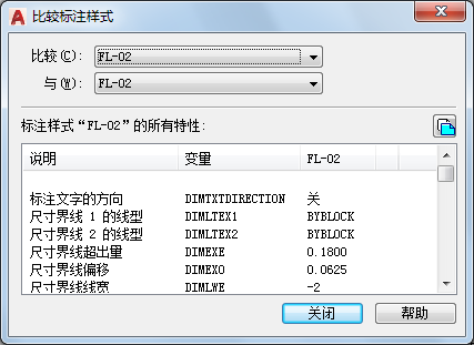 比较两种标注样式的特性或显示一种标注样式的所有特性。