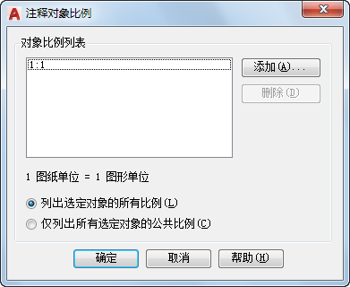 指定在对象比例列表中显示选定对象支持的所有比例。