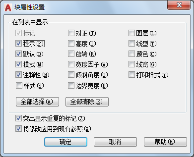 控制“块属性管理器”中属性列表的外观。