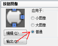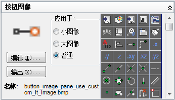 在“按钮图像”窗格中的“应用于”下,选择三个图像指定选项中的一个:“小图像”、“大图像”或“同时应用两者”。然后从图像列表中选择要输入的图像。