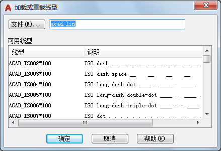 显示当前 LIN 文件名。可以输入另一个 LIN 文件名或单击“文件”按钮,从“选择线型文件”对话框中选择其他文件。