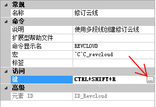 - 在“特性”窗格中,单击“键”框,然后单击 […] 按钮以打开“快捷键”对话框。