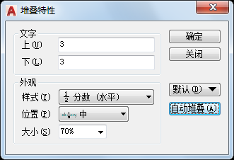 指定堆叠文字的样式格式:水平分数、斜分数、公差和小数。