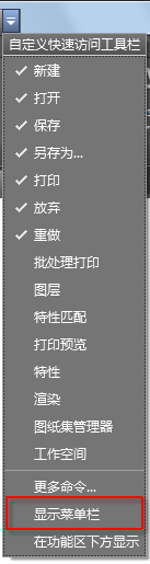 可以从“快速访问”工具栏下拉列表中或通过使用 CUI 来启用菜单栏,以自定义用户界面。