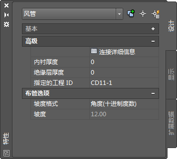 指定当前风管段的坡度值(不可编辑)。 |