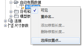 在零件浏览器中,展开“自动布局数据”,在“布局数据”上单击鼠标右键,然后单击“选择放置点”。