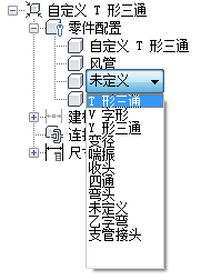 若要指定零件类型,请在“零件配置”下,在“未定义”上单击鼠标右键,单击“编辑”,然后选择“T 形三通”。