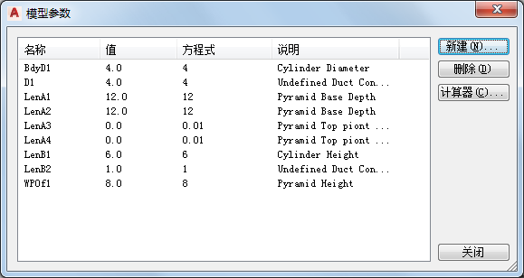 在零件的模型参数中,源自基本体的参数的说明包含基本体的名称。已将多个基本体或基本体的混合体以及手动添加的特征添加零件模型之后,这使您能够更加轻松地区分参数。