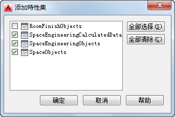 10. 在“添加特性集”对话框中,选择 SpaceEngineeringCalculatedData、SpaceEngineeringObjects 和 SpaceObjects,然后单击“确定”。