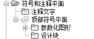 软件会分解符号或块,并将一个“设计块”添加到零件浏览器中的“符号和注释平面”。