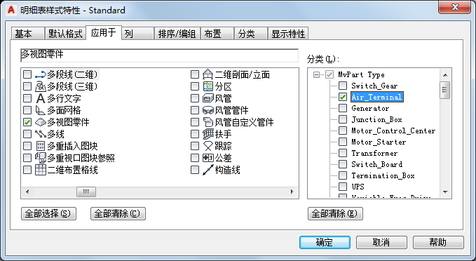 由于软件中的多数设备是多视图零件,许多设备明细表样式使用分类来确保仅以所需零件类型数据填充明细表。