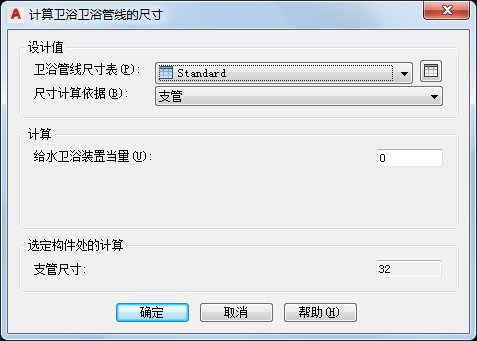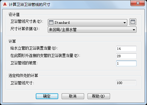 如果该尺寸是根据支管计算所得,则“计算卫浴管线的尺寸”对话框显示的是图形中支管的尺寸结果。