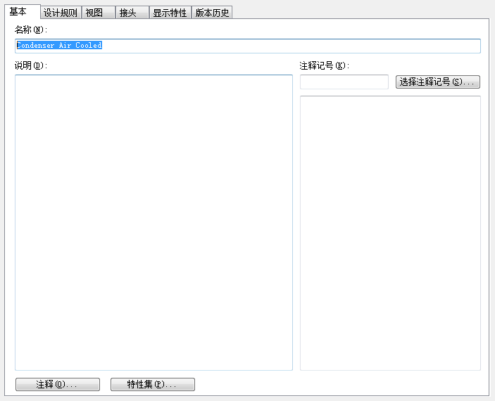 在该对话框中,显示的设置会随在表中所选择的内容(图例样式、视图或接头)而发生变化。例如,在下列图中,请注意标题名称随所选对象而发生的变化。