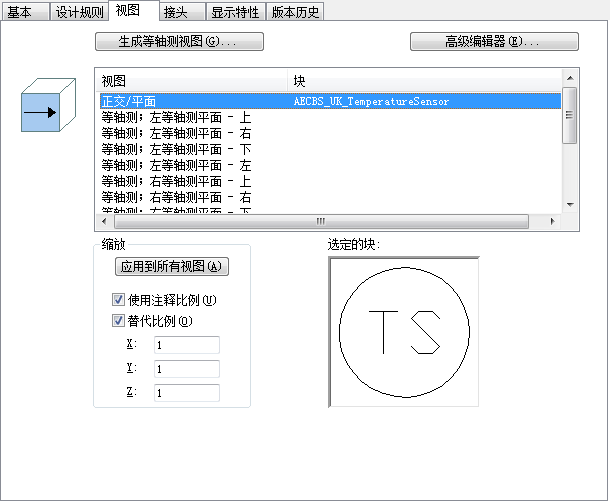 符号转换脚本中的视图特性显示在“样式管理器”的“视图”选项卡上。在该选项卡上,“生成 ISO 块”特性被称为“生成等轴测视图”。