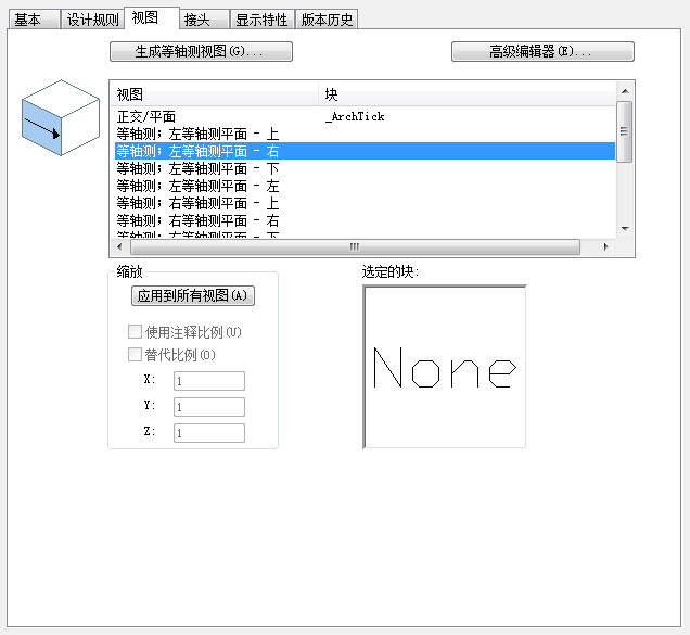 9. 选择一个视图,然后在“缩放”下,指定缩放符号块的方式: