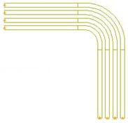 固定半径将指定的折弯半径值用于平行套管管路中的所有折弯。套管管路中的弯头将使用其预定义半径值,且不会进行调整。对于固定半径布管,所有折弯半径都是 16"。