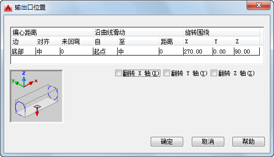 指定一个新的旋转角度,或者基于 X、Y 或 Z 轴翻转管件
