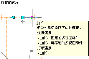 在与另一个对象相连接的端点上使用加长夹点时,必须指定是否希望 AutoCAD MEP 保持对象之间的连接。