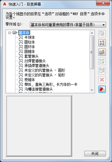 基本体的“快速入门 - 目录屏幕”对话框
