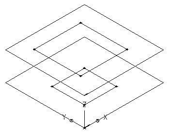 - 在建模区域中,选择 XY 平面作为参照工作平面,在 XY 平面上方拖动光标,然后输入 1" (25 mm) 作为偏移距离。
