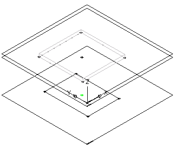 将为底面创建一个矩形轮廓,并将它添加到零件浏览器中的“底面”。也会将矩形轮廓的约束添加到“底面”。