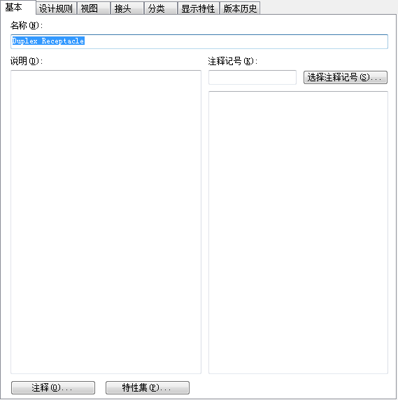 在该对话框中,显示的设置会随在表中所选择的内容(设备样式、设备视图或接头)而发生变化。例如,在下列图中,请注意标题名称随所选对象而发生的变化。