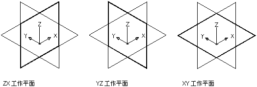 创建 WCS 的标准 ZX、YZ 和 XY 工作平面。