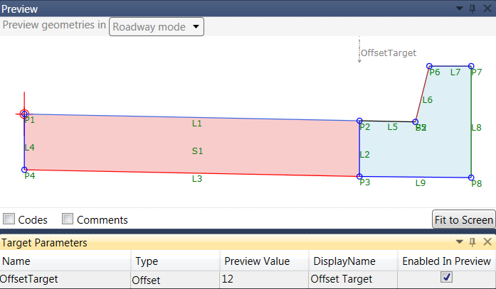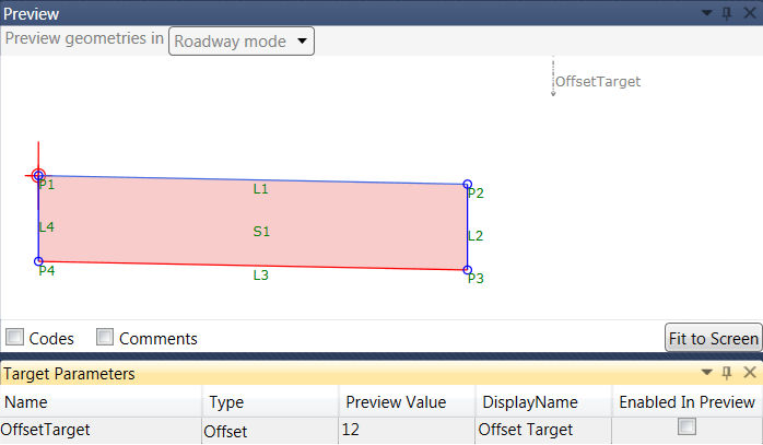 您可以通过清除“Enabled In Preview(在预览中启用)”复选框来查看在未找到偏移目标时部件将如何反应,如下图所示。在这种情况下,车道宽度将改为使用部件中定义的宽度。