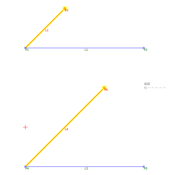 样例 PKT 包含两个“角度和 Y 增量”点样例。每个点几何图形类型均由“角度”和“Y 增量”参数值定义,并且“Y 增量”值可被指定的高程目标参数替代。在两个样例中使用相同的“Y 增量”值。“静态 Y 增量”(P1 到 P3)样例将应用值,但是“高程目标”样例将使用高程目标参数替代静态 Y 增量值。