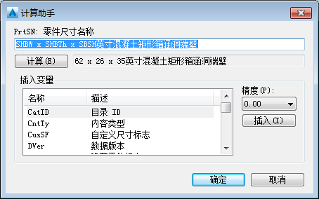 将显示与参数值关联的计算字符串。例如,结构的“零件尺寸名称”(PrtSN) 的计算公式可能为“SHBW x SHBTh x SBSH 英寸混凝土矩形端壁”。或者对于管道,可能为 FormatNumber($PID,0) +“英寸混凝土管道”。