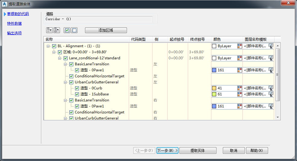 选择将道路区域导出为实体还是 [桩号范围/多边形内/所有区域]:
