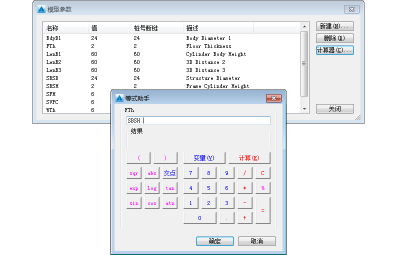 注: 对于常量参数值,您可以定义常量标注,或选择不添加标注并使用基于形状实际大小的默认值。未添加任何标注时,在选择零件尺寸的过程中将不显示参数及其值。