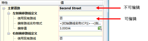 不可编辑特性的着色:在编辑对话框中,不可编辑的特性以灰色(着色)背景显示。可编辑的特性以白色(未着色)背景显示。