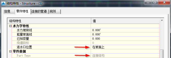 - 进水口通常会在 AutoCAD Civil 3D 中创建为连结点结构,且进水口位置特性为“在坡面上”或在“在凹形上”。