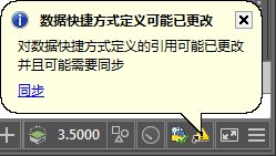 打开图形时会自动同步数据参照。否则,当参考对象过期时,会在图形窗口的浏览树和状态栏中显示标志。