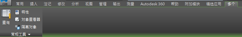 可以从功能区使用的命令已组织为选项卡。每个选项卡组织到一系列面板中。