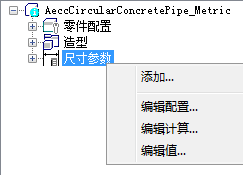 编辑“混凝土管道”零件族中零件尺寸的步骤