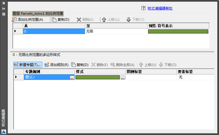 • 样式编辑器中的“0 - 无限比例范围的多边形样式”下,单击“新建专题”