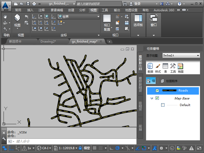 “保存”。 请注意,地图文件与 AutoCAD 图形一样,使用文件扩展名 .dwg。两种文件类型均使用相同的基本文件格式。