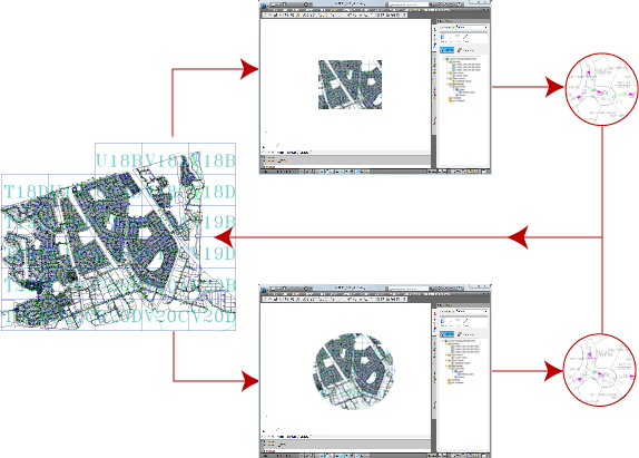 编辑来自附着图形的对象时,AutoCAD Map 3D 追踪每个对象的原始位置,并将这些对象保存回其原始源。
