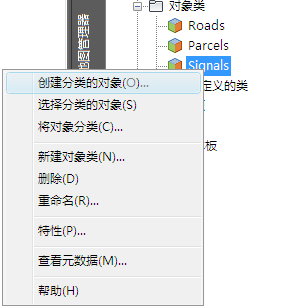 - 在“任务”面板的“地图管理器”选项卡上,在“Signals”对象类上单击鼠标右键,然后单击“创建分类的对象”。