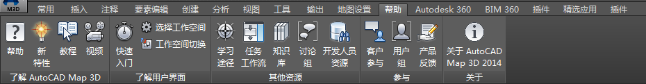 - 帮助:浏览或搜索涵盖 AutoCAD Map 3D 的所有方面的概念和操作步骤。