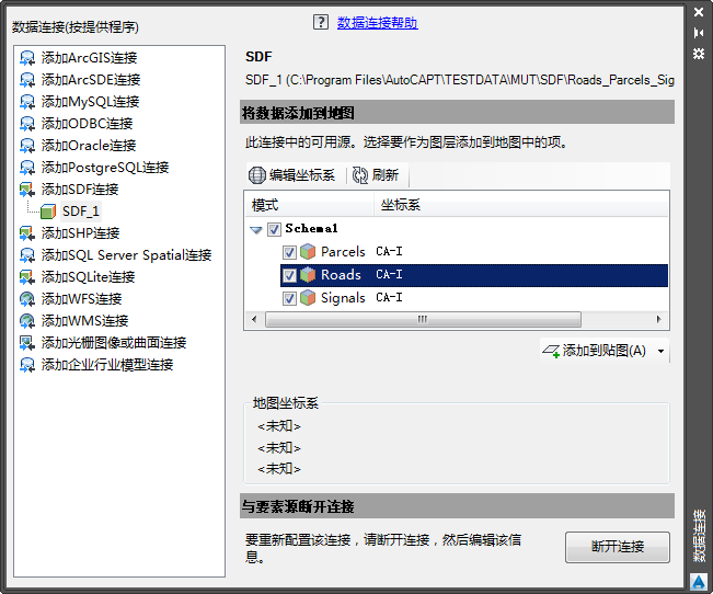 - 在“通过提供程序进行数据连接”下,单击“添加 SDF 连接”。